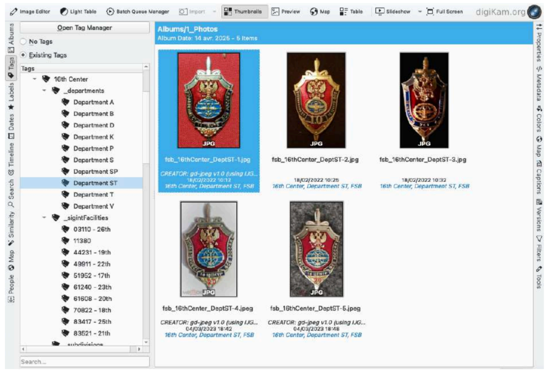 使用 digiKam 开源图片管理工具为素材添加单位驻地符号主题等标签,结合卫星影像完成地理定位,构建结构化研究数据库。