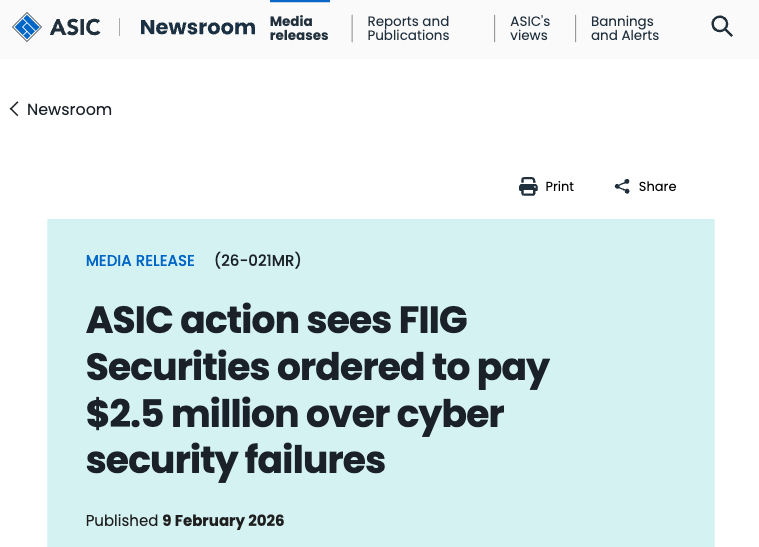 去年3月,ASIC对FIIG Securities提起诉讼,指控其在长达4年的时间里未能实施充分的网络安全措施。ASIC指称,这一失误使黑客得以入侵FIIG Securities的网络。