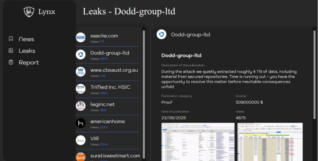 9月,俄罗斯黑客组织Lynx成功入侵英国国防供应链,窃取涉及多座英军及美军基地的敏感信息,反映出国防供应链面临的严重网络安全风险。Lynx入侵了英军的维护与建筑承包商Dodd Group的系统,窃取了多达4 TB的数据,并将其中约1千份文件发布到暗网上。其中部分文件被标记为“受控文件”或“官方敏感文件”,这些文件涉及位于英国皇家空军莱肯希思基地(驻有美空军的F-35隐形战机,据信该基地还存放有核弹)、波特里斯基地(被纳入北约防空网络的一座绝密雷达站)和普雷丹纳克基地(英国国家无人机中心所在地),以及英国皇家海军的卡尔德罗斯航空站等。这些文件中包括各基地的访客列表,其中列出了承包商和国防部人员的数据,如人员的姓名、车辆登记号码、手机号码和电子邮箱等。此外还包括内部电子邮件指南和安全说明,建筑公司Kier在莱肯希思基地和米尔登霍尔基地工作的文件,以及与英国皇家海军的雷利基地、德雷克基地和英国皇家空军圣莫甘基地有关的资料等。Dodd Group公司承认有黑客从该公司窃取了“有限的数据”,并称已采取措施来保护和恢复系统。此次事件表明,国家级黑客组织正越来越倾向于以防护相对薄弱的承包商网络为跳板,窃取高价值的军事和安全情报。