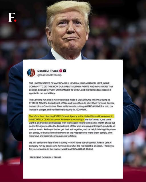 因此,我指示美国政府所有联邦机构立即停止使用Anthropic公司的所有技术。我们不需要它,我们不想要它,并且不会再与他们有任何业务往来!对于像美国防部这样在不同层面使用Anthropic产品的机构,将有6个月的过渡期。Anthropic最好认真对待此事,并在过渡期内提供协助,否则我将动用总统的全部权力迫使其遵守规定,并追究其严重的民事和刑事责任。”