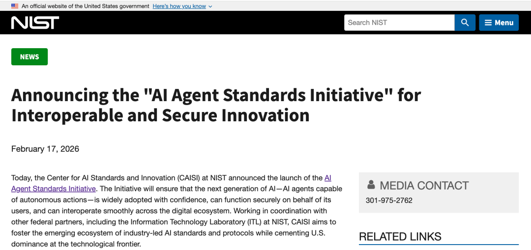 这也是为什么 NIST(美国国家标准与技术研究院)旗下的 CAISI 在 2026年2月17日正式宣布启动 AI Agent Standards Initiative:目标不是再写一套“道德口号”,而是推动 可互操作、可被信任、可被验证 的行业标准与协议,让 Agent 真正能在企业与关键行业里规模化落地。