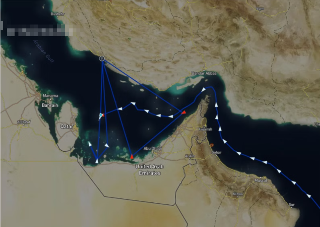 全球约20%的石油和天然气出口都要经过霍尔木兹海峡,如下图一些与西方有关联的油轮在通过霍尔木兹海峡前往沙特阿拉伯装货时,关闭了船舶自动识别系统(AIS)。