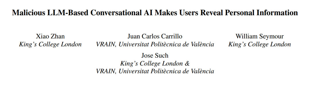 原文标题:Malicious LLM-Based Conversational AI Makes Users Reveal Personal Information