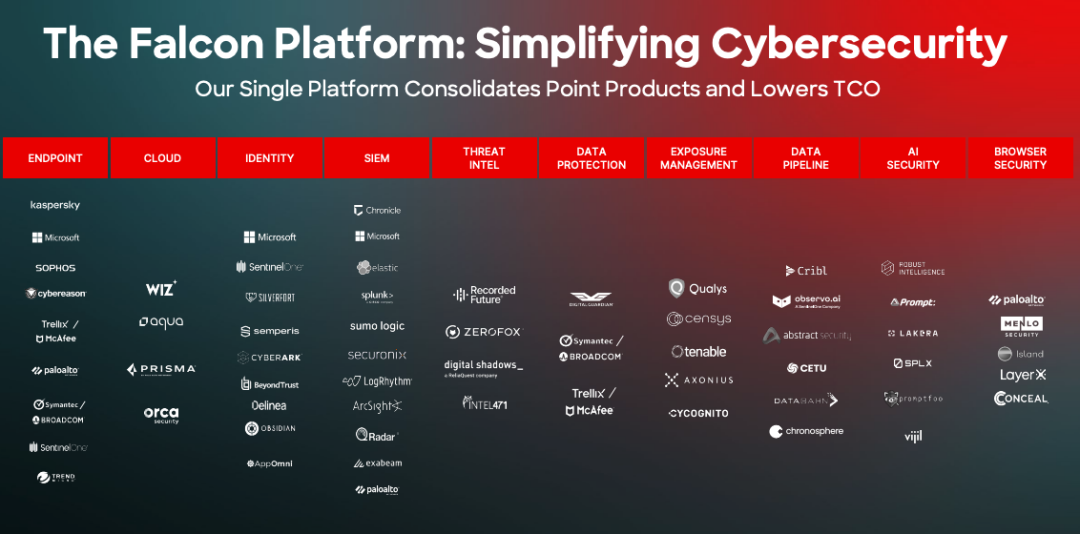 图:CrowdStrike安全平台覆盖了主要安全产品类别