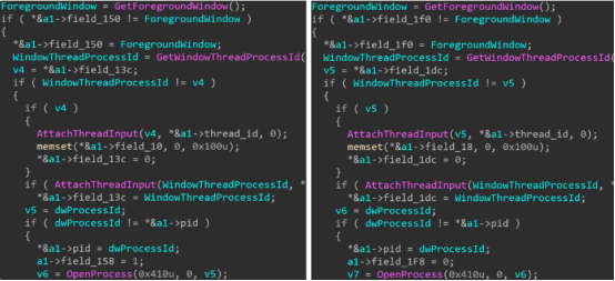 ESET的研究将APT28高级植入体开发团队的重新激活追溯至2024年4月乌克兰的一起网络攻击事件。当时乌克兰计算机应急响应小组(CERT-UA)在一台乌克兰政府设备上,发现了名为SlimAgent的键盘记录恶意植入体。后续调查显示,该植入体与APT28在2010年代的主要使用的后门程序Xagent存在直接的代码渊源。研究人员在溯源分析过程中发现,早在2018年,就有与SlimAgent代码高度相似的恶意样本被用于针对欧洲两个国家政府机构的攻击。这些2018年样本与2024年的SlimAgent拥有完全相同的六步数据收集循环,仅在内部数据结构布局上存在细微差异,且SlimAgent新增了日志加密功能,研究人员高度确信二者源自同一代码库。研究人员进一步的代码比对显示,2018年的恶意样本内部名称为RemoteKeyLogger.dll,与Xagent的键盘记录模块名称完全一致。二者在键盘记录逻辑触发条件、API调用方式上高度重合。甚至在日志输出格式上也保持一致,均采用HTML格式生成日志,且将应用程序名、按键记录、窗口名分别以蓝色、红色、绿色标注。以上这些代码特征都成为了将SlimAgent归属到APT28组织的关键证据,证实SlimAgent是Xagent键盘记录模块的独立演进版本,且该模块至少从2018年起就被单独部署使用。