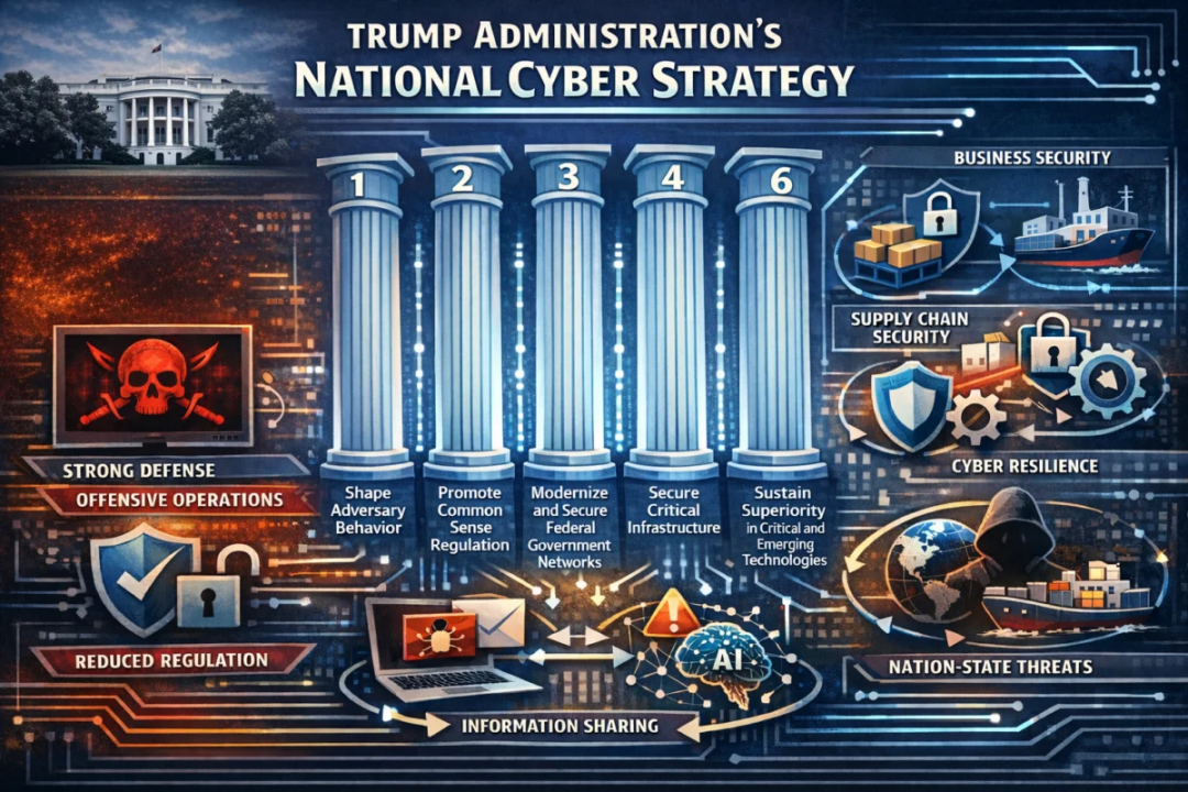 其次,从战略内容来看,2026年版与此前网络安全战略,尤其是2023年拜登政府战略的差异更加明显。2023战略强调通过监管手段重塑市场激励机制,包括提高软件提供商责任、对关键基础设施企业与政府承包商施行强制性网络标准等。其核心逻辑是通过制度约束和责任分配降低网络风险。相比之下,2026战略几乎没有涉及新的监管或企业责任,而是聚焦于三个方向:一是挑战外国对手,通过主动防御与进攻塑造对手行为;二是简化现有法规,以释放企业在网络防御中的主动性和创新能力;三是强化私营部门在识别与阻断网络攻击中的角色。这种转向体现出特朗普政府网络战略的核心理念——以行动能力和主动性替代制度约束。