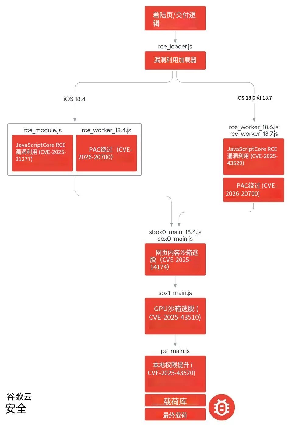 2026 年 2 月 11 日 | 苹果在 iOS 26.3 版本中修复 CVE-2026-20700 漏洞,该漏洞为 DarkSword 全版本通用的 PAC 与 TPRO 防护绕过漏洞 |