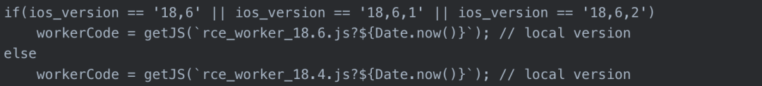 所有攻击入口的最终目标,都是加载 rce_loader.js 文件。该文件是 DarkSword 的漏洞加载器,核心功能是识别设备的 iOS 系统版本,匹配并加载对应版本的远程代码执行漏洞利用模块。
