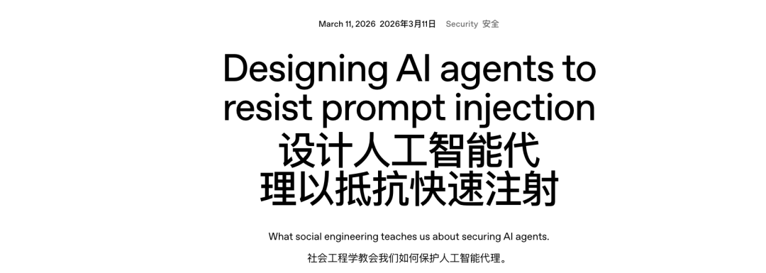 但 OpenAI 最新发布的文章《Designing AI agents to resist prompt injection》其实在提醒行业一件事:现实里的提示注入,已经越来越不像“提示词覆盖”,而越来越像“社会工程学”。