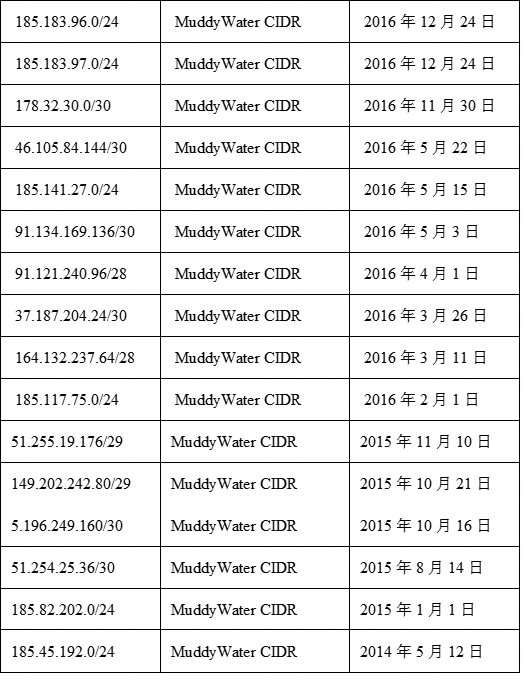 APT33和Charming Kitten基础设施出现在特征集群90022和几个更早的集群中,最近一次带有APT33标签的判定记录于2020年6月。MuddyWater最早于2015年出现在历史集群62189和51553中,其工具包括PhonyC2、Phishery以及后来被归类为Seedworm/Static Kitten工具集的早期版本。