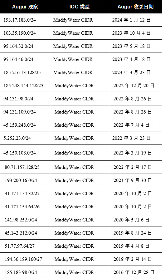 2026年2月,MuddyWater的活动依然活跃,尽管活动更为隐蔽。报告指出,数十家机构(包括银行、机场和非营利组织)中都植入了与MuddyWater相关的后门。新型后门“Dindoor”的使用表明,MuddyWater试图维持访问权限并悄无声息地巩固立足点,这更符合隐蔽持久性而非公开破坏的策略。Augur认为,这与更广泛的评估相符:MuddyWater仍在运作,但采取了更为隐蔽的持久性和基础设施部署方式。