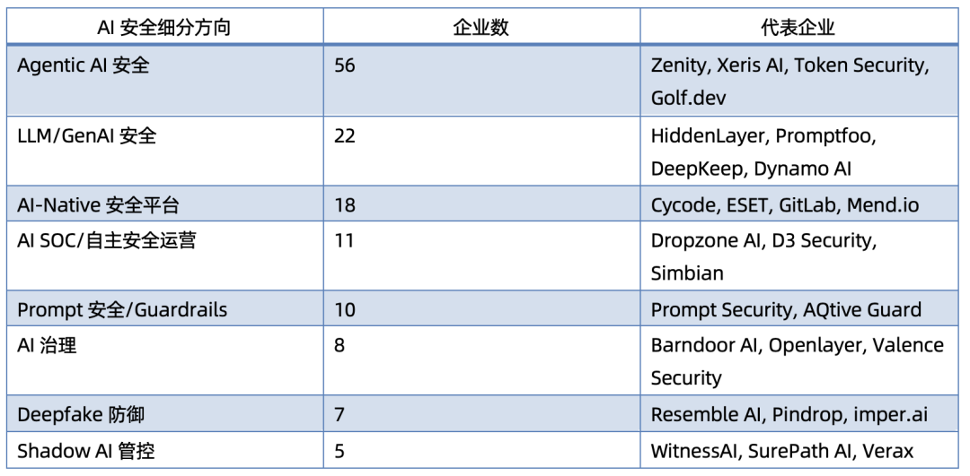 表2:AI安全细分赛道企业分布