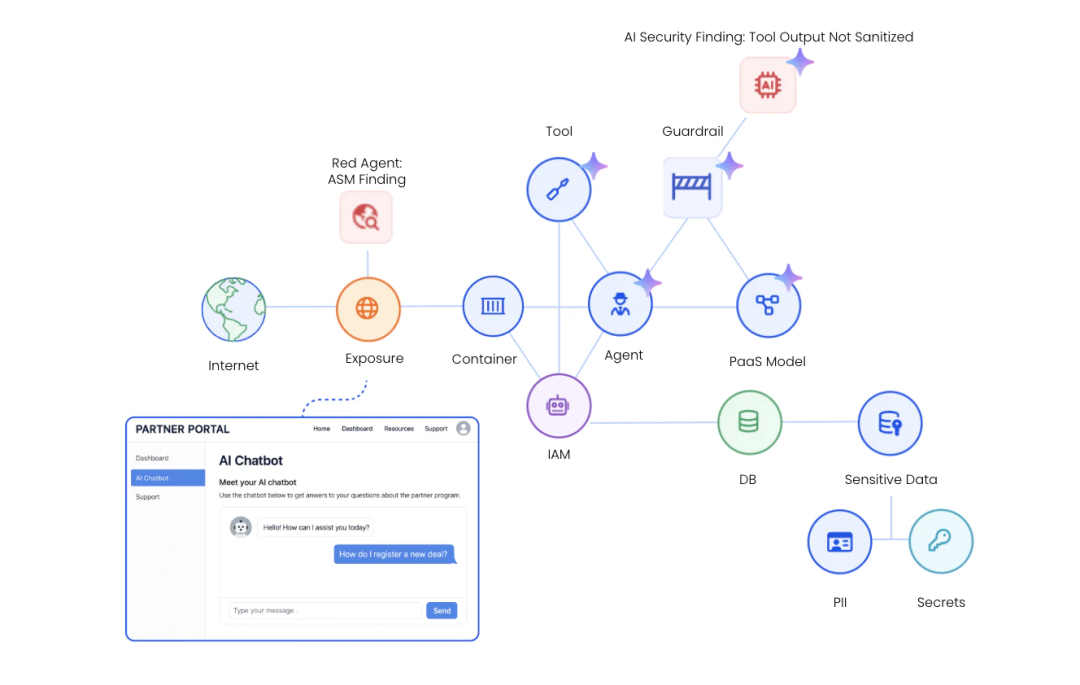 与 Pillar Security 集成,接入黑盒 AI Agent 红队评估结果,补充公网暴露 AI 端点的漏洞信息,结合环境内现有风险完成攻击路径关联,聚焦高影响问题的修复。