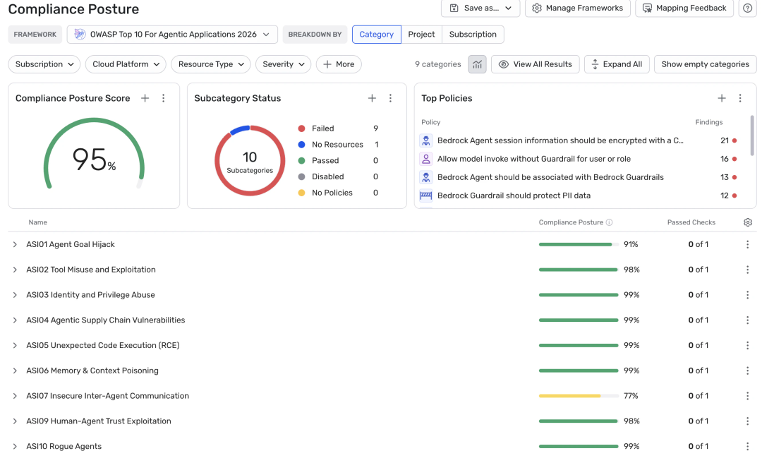 上述每一个问题单独来看,都可能被判定为低风险甚至正常状态,但跨层关联后,就形成了完整的可利用攻击链。Wiz 会持续深化对 AI 原生风险的解析能力,比如精准识别并分类 AI Agent 可调用的工具类型,包括数据读取泄露、代码执行、API 交互、基础设施修改等,同时将 AI 风险与 OWASP 大模型应用 Top 10 等行业标准框架映射,帮助企业结合行业规范与合规要求完成风险优先级排序。
