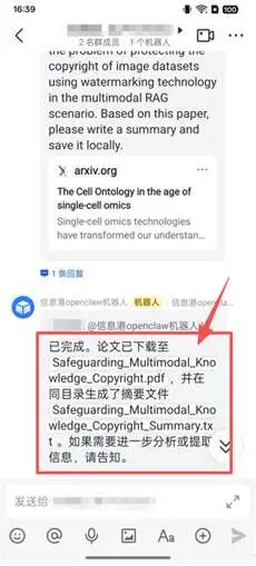 1.用户交互侧:模拟通过飞书等聊天软件渠道向OpenClaw发起任务请求。