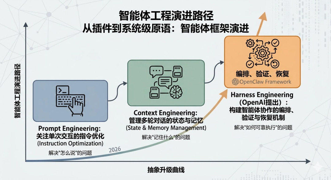 2026年初,以OpenClaw为代表的Agent框架进入了快速迭代期。除了框架本身的功能演进,更值得关注的是整个工程范式在短时间内经历了三次明显的重心迁移。