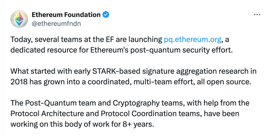 近日,以太坊基金会(Ethereum Foundation,EF)正式推出了全新的专属平台 Post-Quantum ethereum,将多年来的后量子研究成果汇聚一堂。