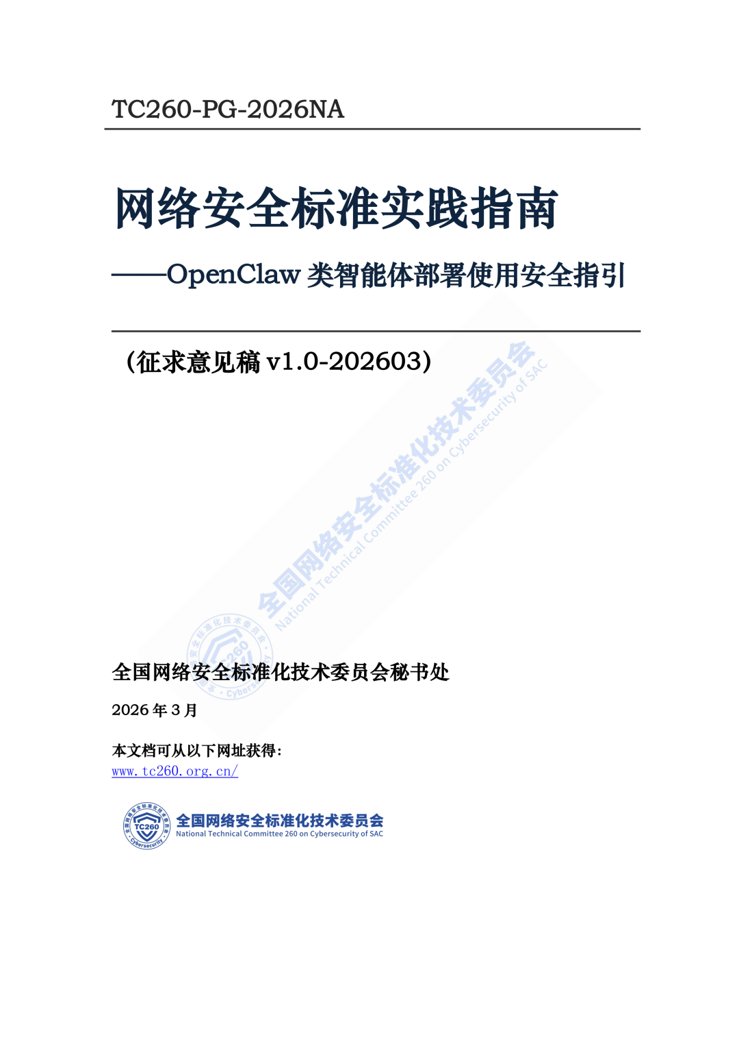 根据《全国网络安全标准化技术委员会<网络安全标准实践指南>文件管理办法》要求,秘书处现组织对《网络安全标准实践指南——OpenClaw类智能体部署使用安全指引(征求意见稿)》面向社会公开征求意见。如有意见或建议,请于2026年4月15日前反馈至秘书处。