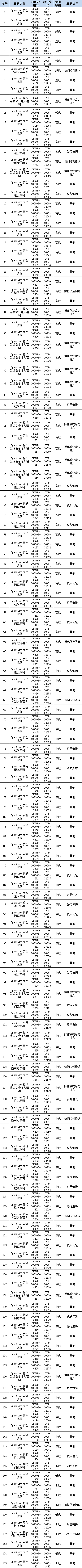 自2026年3月10日-2026年4月2日,国家信息安全漏洞库(CNNVD)共采集OpenClaw漏洞155个,其中超危漏洞11个、高危漏洞53个、中危漏洞80个、低危漏洞11个。参考链接:https://github.com/openclaw/openclaw/releases
