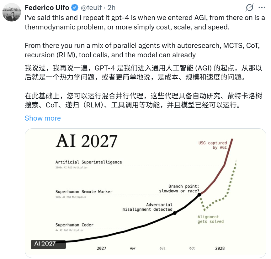 也有人表示,这其实表明我们其实已经迈过了 AGI 的起点: