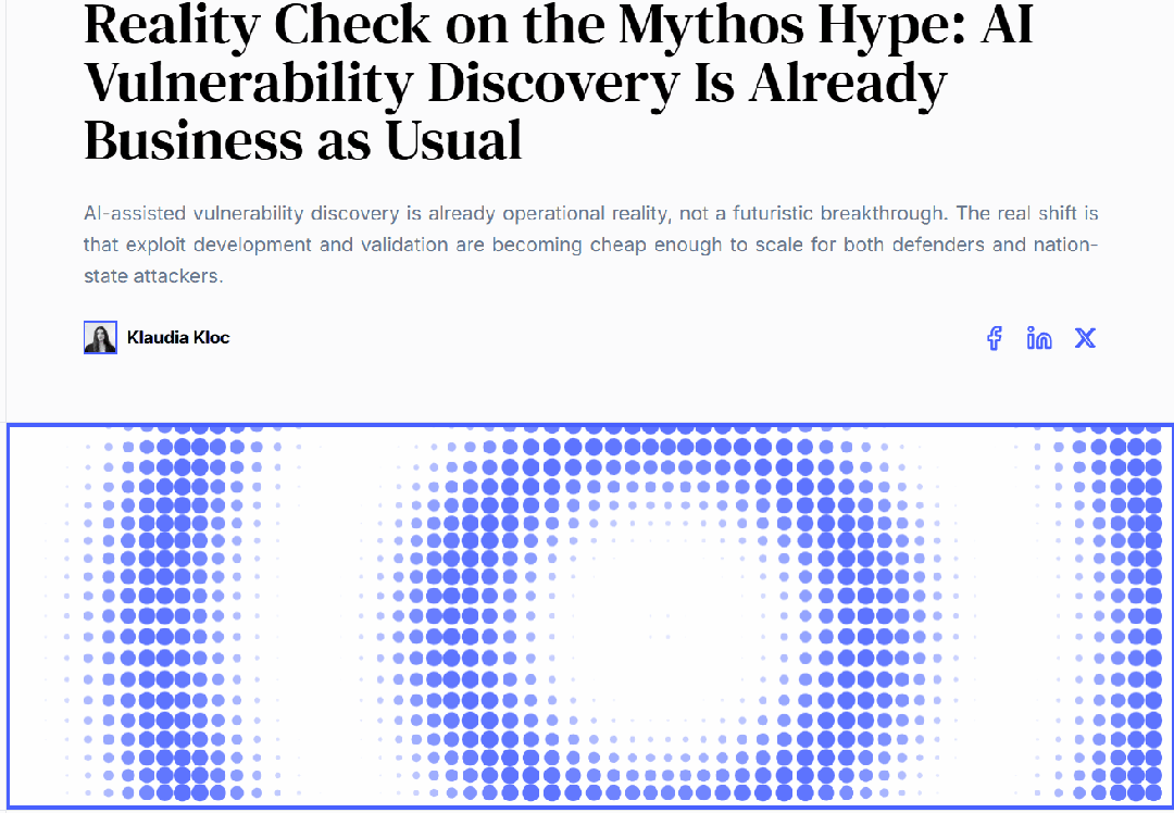 1.Moczadło, D. (2026, April 7). Claude Mythos Is a Backlog Visibility Warning for Enterprise Security Teams. Vidoc Security Lab Blog. https://blog.vidocsecurity.com/blog/project-glasswing-is-the-real-claude-mythos-story