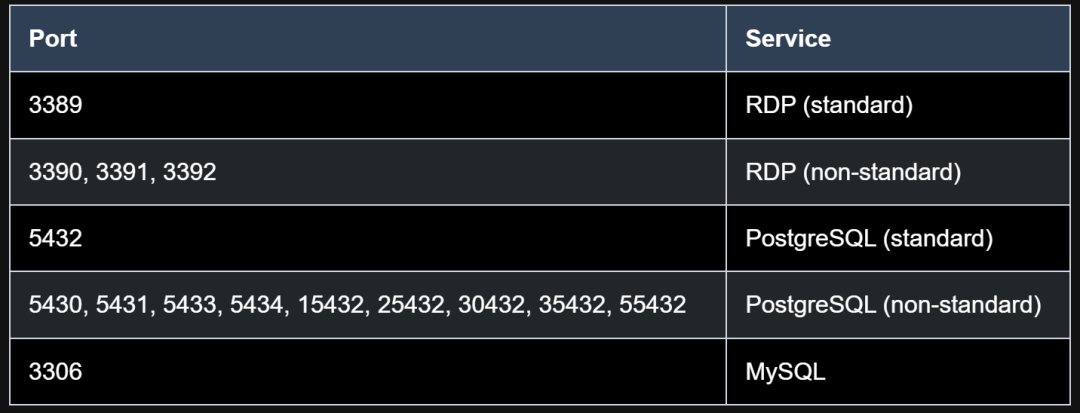 多个高流量 IP 共享相同的传输层安全协议 TLS 指纹,说明使用了统一部署的扫描工具。同时,所有 IP 都扫描相同的标准和非标准端口,包括 RDP 的 3389、3390、3391、3392 端口,以及 PostgreSQL 的 5432 和多个非标准端口。