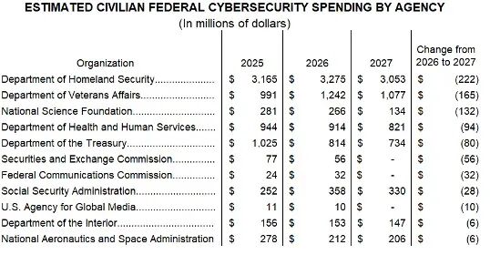 尽管来自国家行为体和网络犯罪组织的威胁在复杂性和破坏力方面持续上升,2027年预算提案仍选择削减联邦网络安全总体支出。