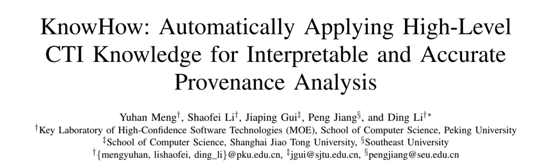 原文标题:KnowHow: Automatically Applying High-Level CTI Knowledge for Interpretable and Accurate Provenance Analysis