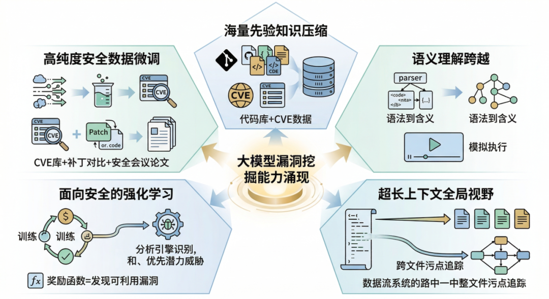 回到最初的问题:为什么大模型能做漏洞挖掘?从三个场景的分析中,可以看到一条清晰的线索。