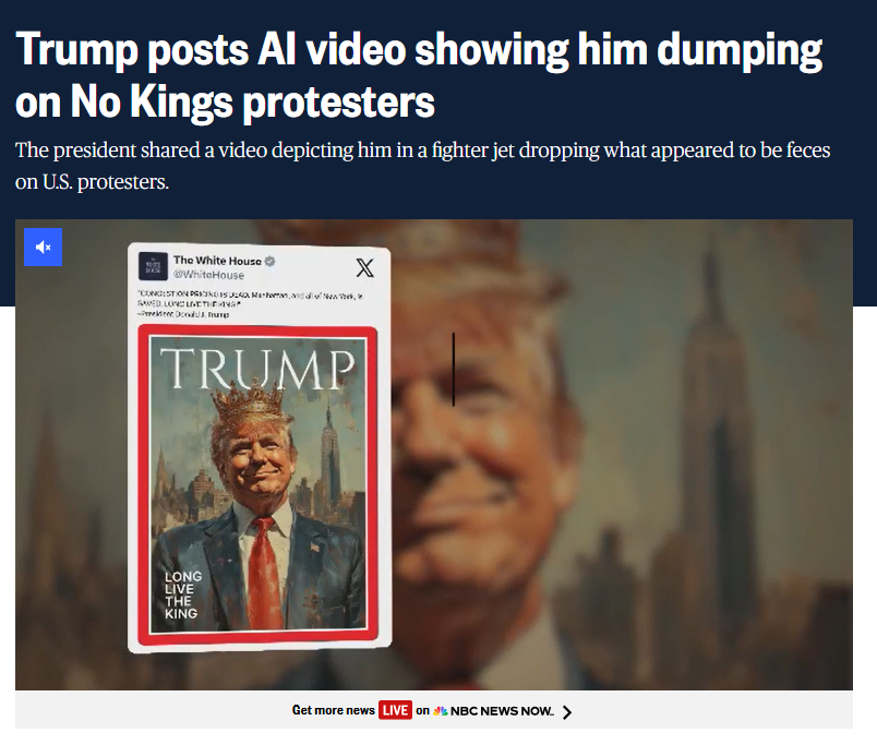 这一趋势在近年迅速加剧。2025年10月,唐纳德·特朗普发布AI生成视频,描绘其戴王冠驾驶战斗机并向抗议者倾倒粪便随后又发布视频,将其总统图书馆设想为配有金色电梯的浮夸摩天大楼。伊朗方面的“乐高人物视频”则是这一趋势的最新体现。