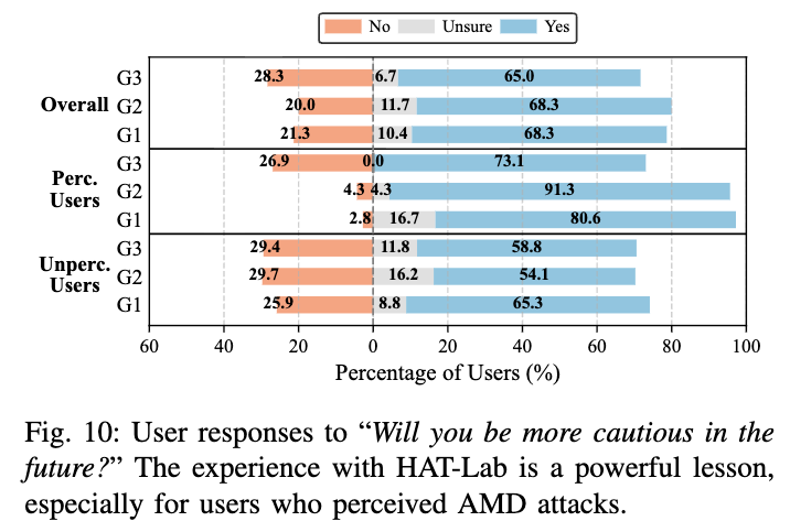 实证数据支持了这一假设:在实验中成功识别攻击的用户,超过90%表示将在后续交互中采取更谨慎的策略。这种「体验式学习」带来的行为修正效果,显著优于传统的理论警示。