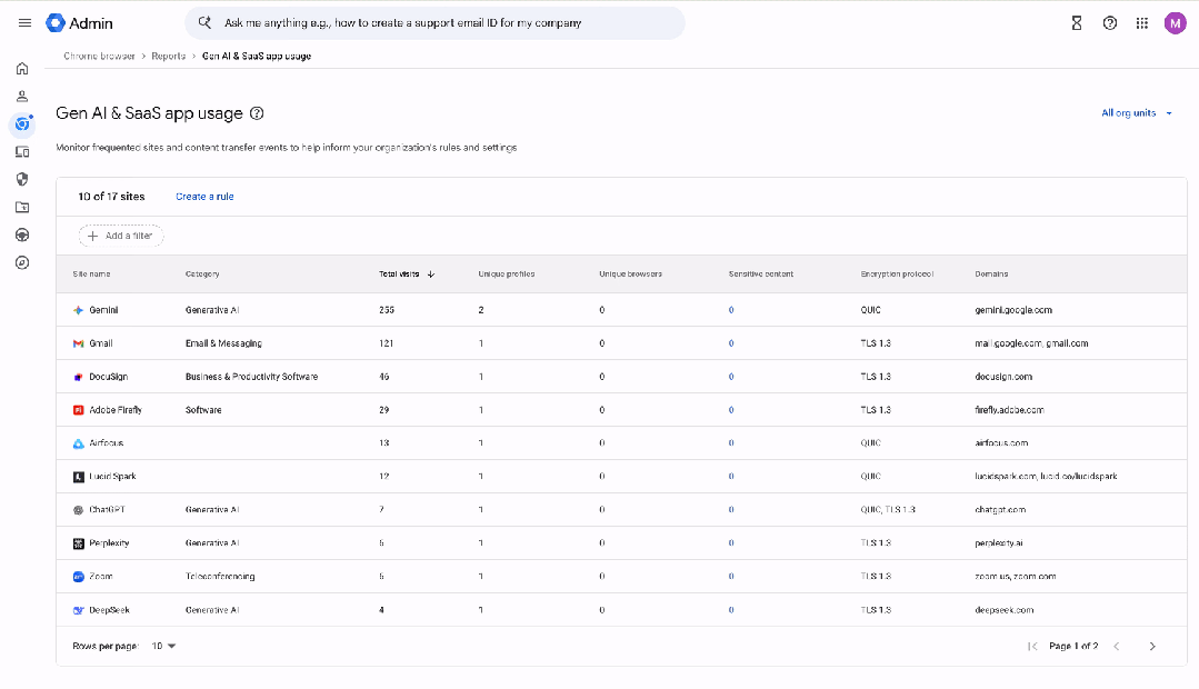 Chrome 企业版也针对 AI 时代进行了升级,新增了 AI 感知扩展威胁检测和影子 AI 报告功能,帮助企业监控员工对未授权 Web AI 和 SaaS 应用的使用情况。