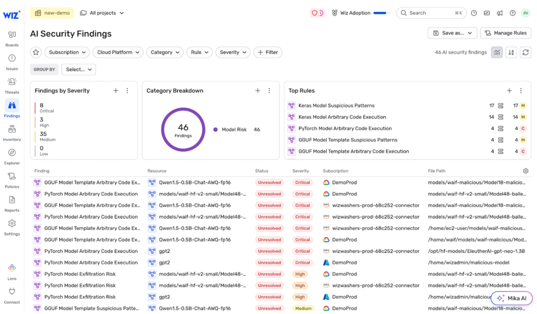 针对 AI 原生开发的安全挑战,Wiz 还推出了多项新功能: