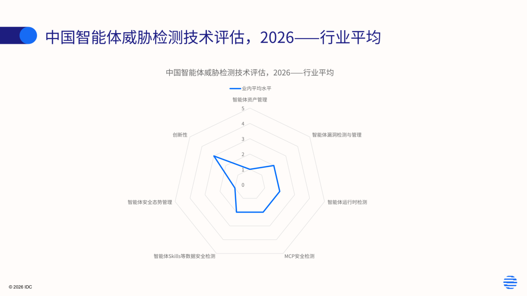 IDC在最新发布的《中国智能体威胁检测技术评估,2026》报告指出,当前市场上的智能体安全能力正在从单点检测向体系化治理演进,相关能力涵盖资产管理、漏洞检测、运行时监测、协议安全、数据安全以及安全态势管理等多个方向。该报告综合评估了国内主要厂商在相关领域的技术能力,报告入选厂商包括360数字安全集团、安恒信息、阿里巴巴、火山引擎、华为、君同未来、绿盟科技、领信数科、启明星辰集团、瑞数信息、新华三、亚信安全以及中国电信等。截止到2026年4月,中国智能体威胁检测这一市场仍处于技术快速迭代的状态,技术服务提供商的产品服务能力仍处于快速补齐功能的阶段,技术的精细化、行业化水平仍存在不足。