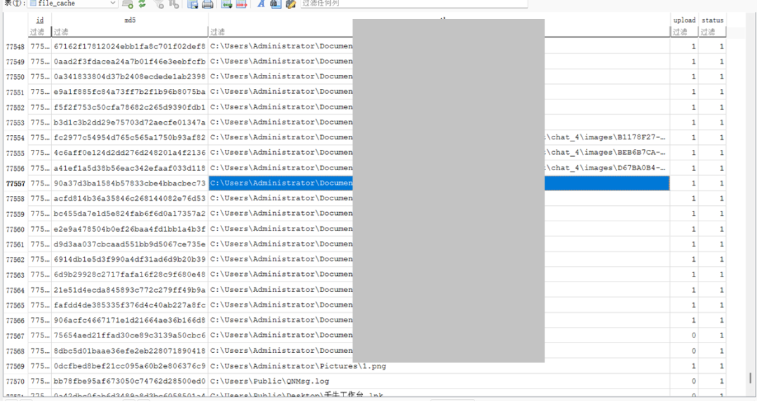 精准锁定敏感数据:外传列表显示,精准窃取指定文件夹下的敏感文件,从该数据库内容看涉及用户在工作中产生的大量运营文档及电商平台软件的敏感聊天记录及图片 。