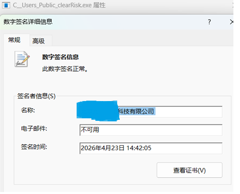 与此前不同,该浏览器进程在攻击活动后数天,下发了清理工具。下发的程序与此前不同,此程序数字签名为浏览器厂商官方签名。