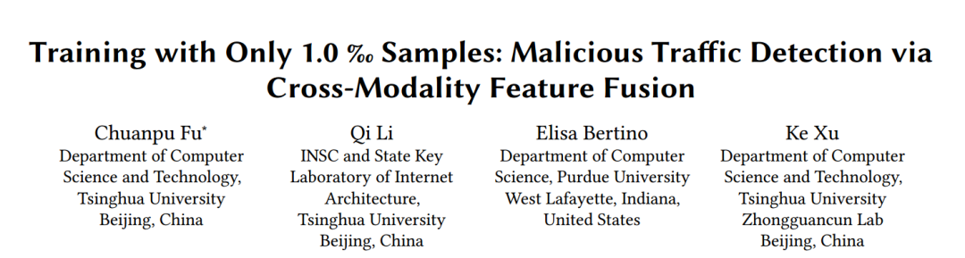 Fu, et al. "Training with Only 1.0‰ Samples: Malicious Traffic Detection via Cross-Modality Feature Fusion." Proceedings of the 2025 ACM SIGSAC Conference on Computer and Communications Security. 2025.