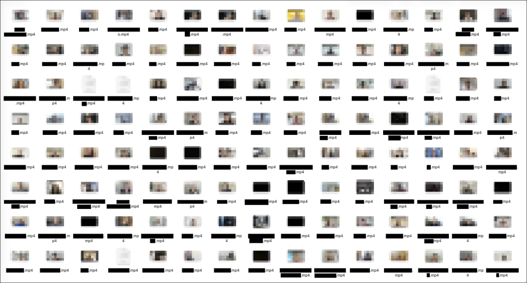 第一种媒体资产是此前受害者的真实预录视频。这些.mp4 文件是在早期攻击中通过 HTML 诱饵页面窃取的实际摄像头画面。当受害者加入假会议时,页面会通过 getUserMedia API 捕获其实时摄像头流,并将数据传输到攻击者服务器进行录制。