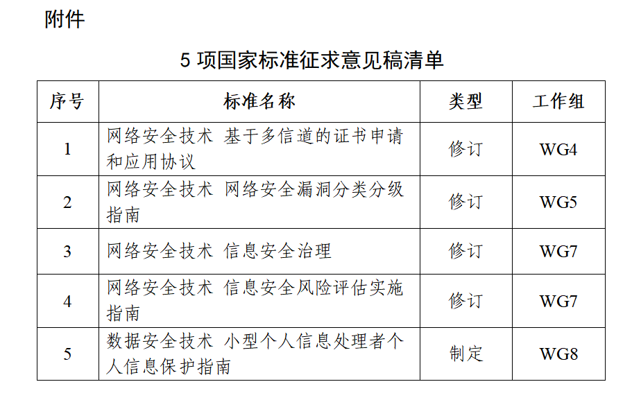 全国网络安全标准化技术委员会归口的《网络安全技术 基于多信道的证书申请和应用协议》等5项国家标准现已形成标准征求意见稿。根据《全国网络安全标准化技术委员会标准制修订工作程序》要求,现将该5项标准征求意见稿面向社会公开征求意见。标准相关材料已发布在网安标委网站(网址:https://www.tc260.org.cn/portal/suggestion),如有意见或建议请于2026年6月29日24:00前反馈秘书处。