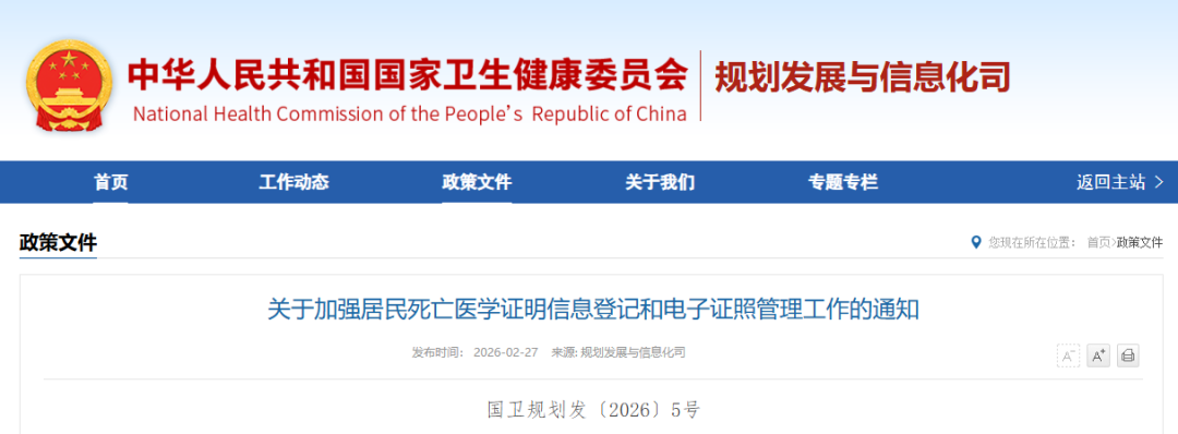 《关于加强居民死亡医学证明信息登记和电子证照管理工作的通知》政策解读