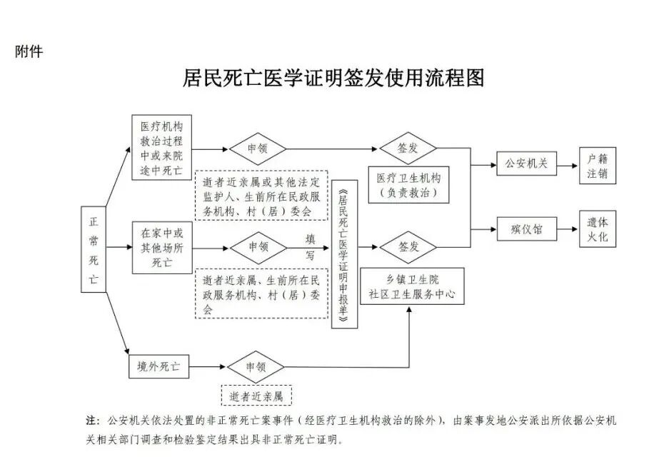 (一)《居民死亡医学证明》(以下简称《死亡证明》)是医疗卫生机构出具的、说明居民死亡及其原因的医学证明,作为户籍注销、殡葬等人口管理的重要凭证之一,由卫生健康、公安、民政部门共同管理。