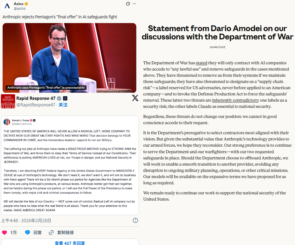 图18 Anthropic首席执行官达里奥·阿莫迪拒绝妥协的声明