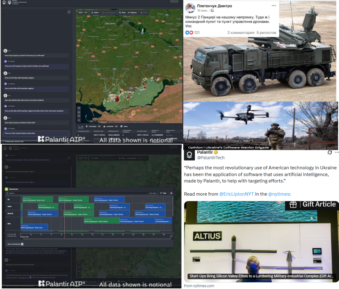 以俄乌冲突为标志,AI开始深度嵌入情报处理与战场认知的核心闭环。乌克兰方面借助Palantir等商业数据分析平台,将卫星影像、无人机航拍、传感器数据与地面部队反馈进行自动化关联与融合,构建了实时、动态更新的数字化战场综合态势图。与此同时,大量开源情报(OSINT)在AI支持下实现自动化处理,社交媒体中的图像、视频内容能够被快速识别关键军事要素(如装备型号、部队标识)并进行地理定位,从而将网络空间中的碎片化、异构数据迅速转化为可行动的战术情报。网络战在此阶段超越了单纯的干扰范畴,进化成为支撑物理战场决策的关键、实时情报来源,AI承担了“理解”与“结构化”海量异构数据的核心角色。