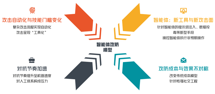 对抗节奏加速:AI驱动的攻击系统能够管理大量并发线程,并快速适应防御的变化,将对抗节奏提升至机器速度。这给传统的人工响应体系构成了巨大压力。