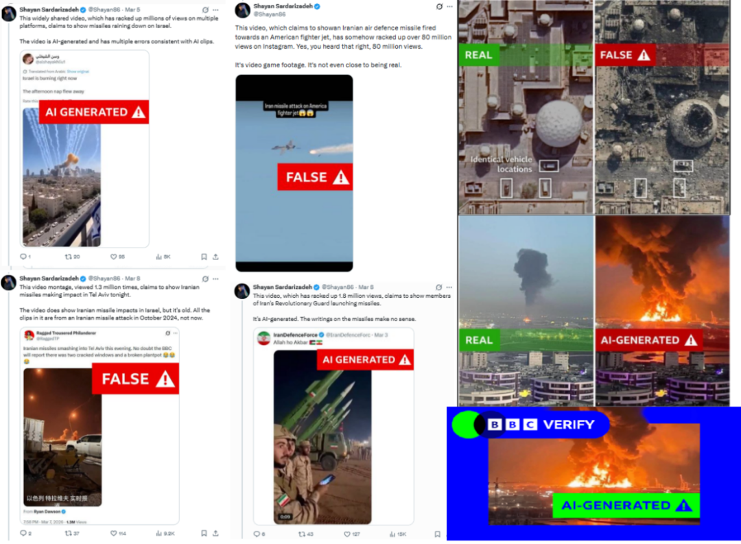 在针对外国的行动中,AI被用于快速生成大量贴合目标国政治生态、文化语境的多语言文章、社交媒体帖文甚至深度伪造内容,以冒充本地活动家或媒体,围绕选举、种族矛盾、外交政策等议题煽动分裂、制造混乱。例如,X(原Twitter)平台不得不禁止用户反复发布未标记的AI生成战争视频;英国事实核查机构Full Fact指出,AI正以前所未有的速度加速虚假信息在社交媒体的传播。提升公众的媒介素养与信息甄别能力,已成为防御认知攻击的关键社会工程。