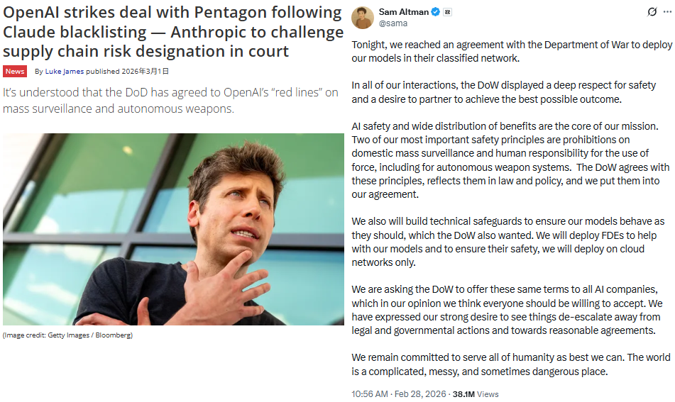 图19 OpenAI宣布与美国国防部达成新的合作协议
